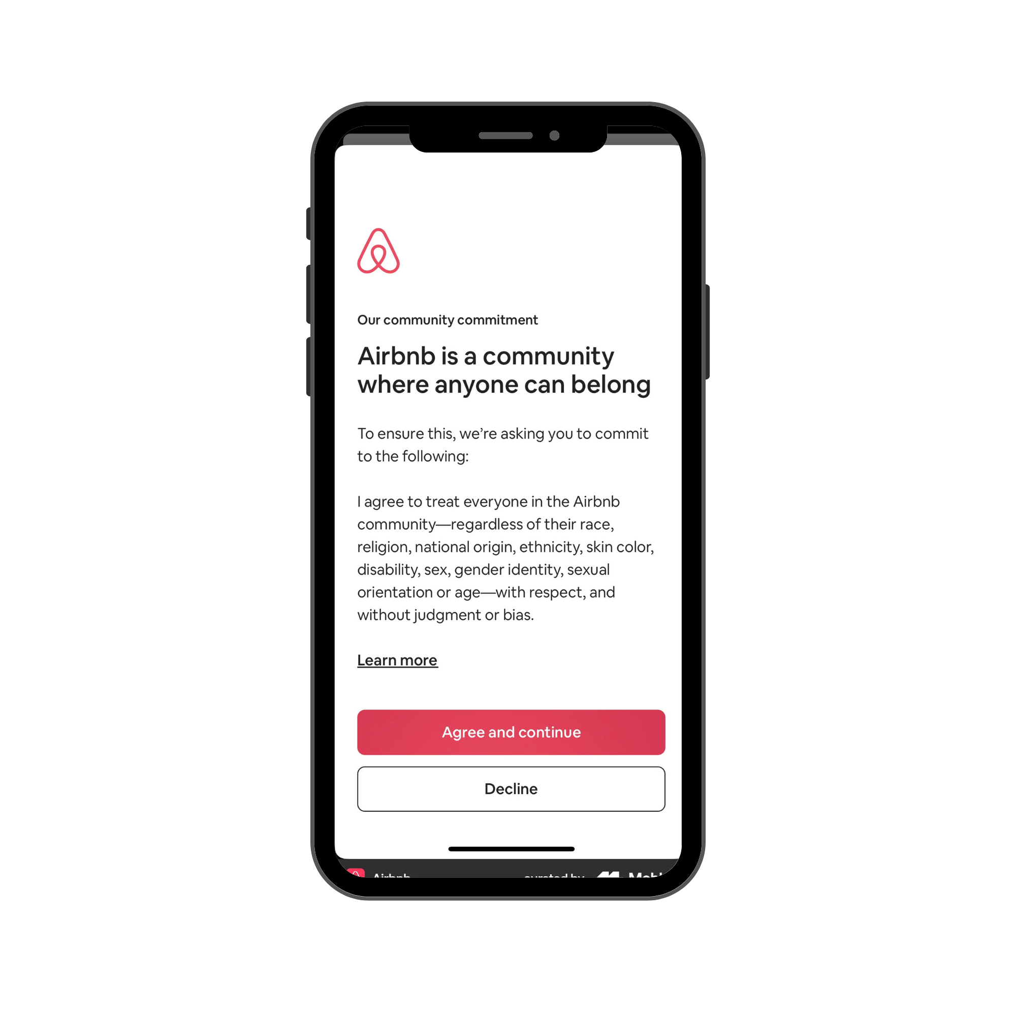 Airbnb sets the tone with upfront community guidelines that users have to agree to before entering the vacation rental marketplace, which highlights what the company values.